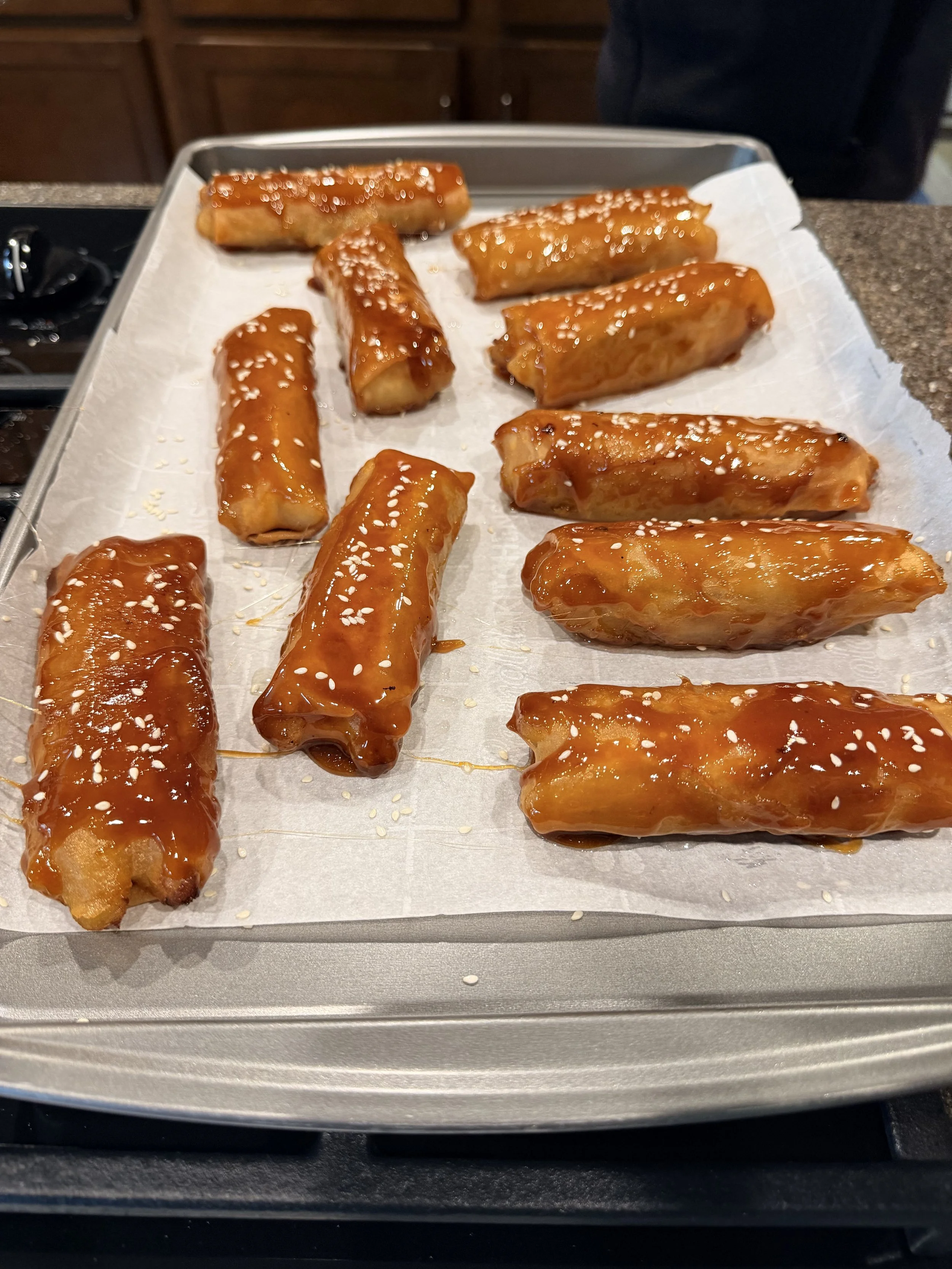 Lumpia: Filipino egg rolls, usually filled with pork and vegetables, then deep-fried.